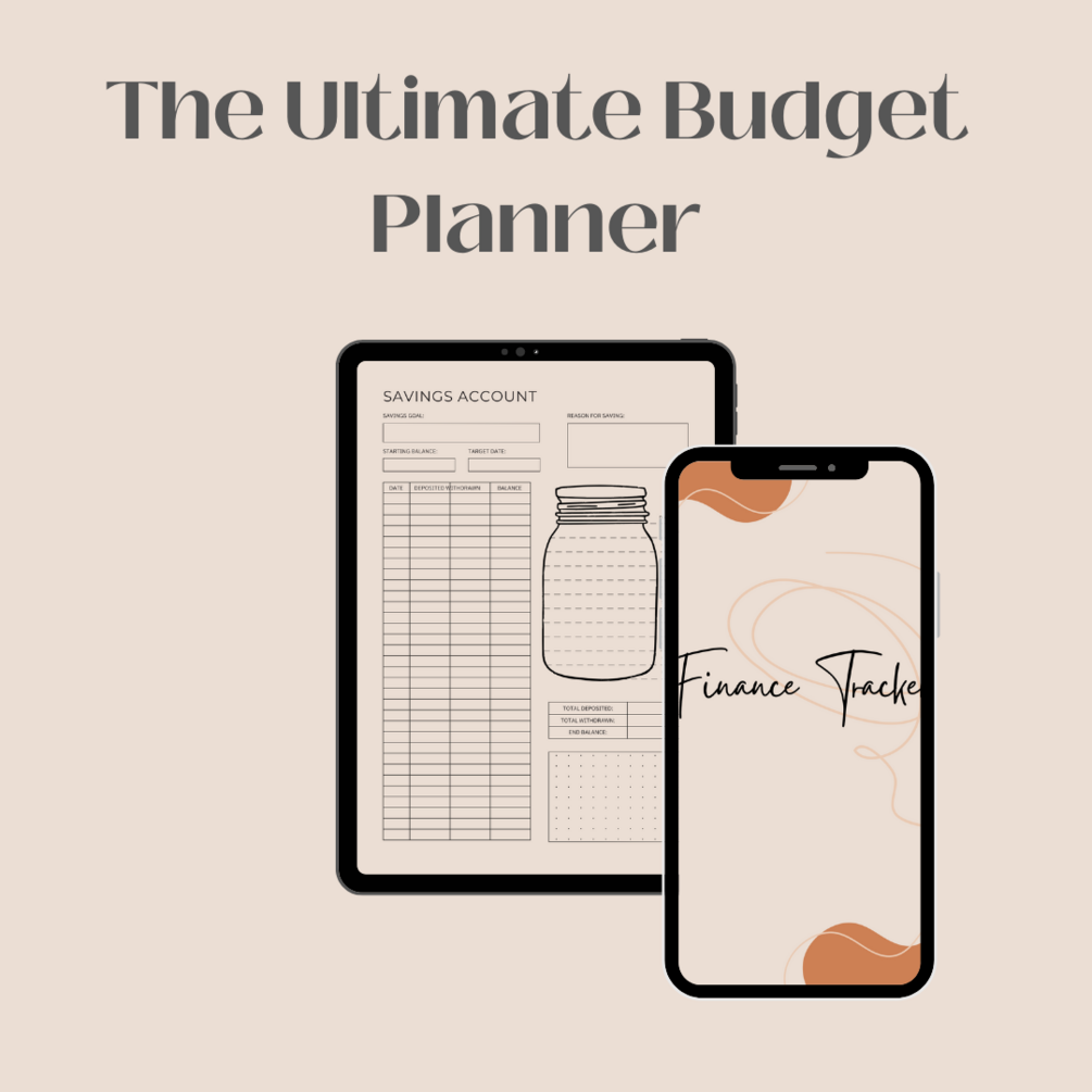 A 4 in 1 Budget Planner consists of Savings Challenges, Savings Trackers, Budget sheets and Finance Trackers.